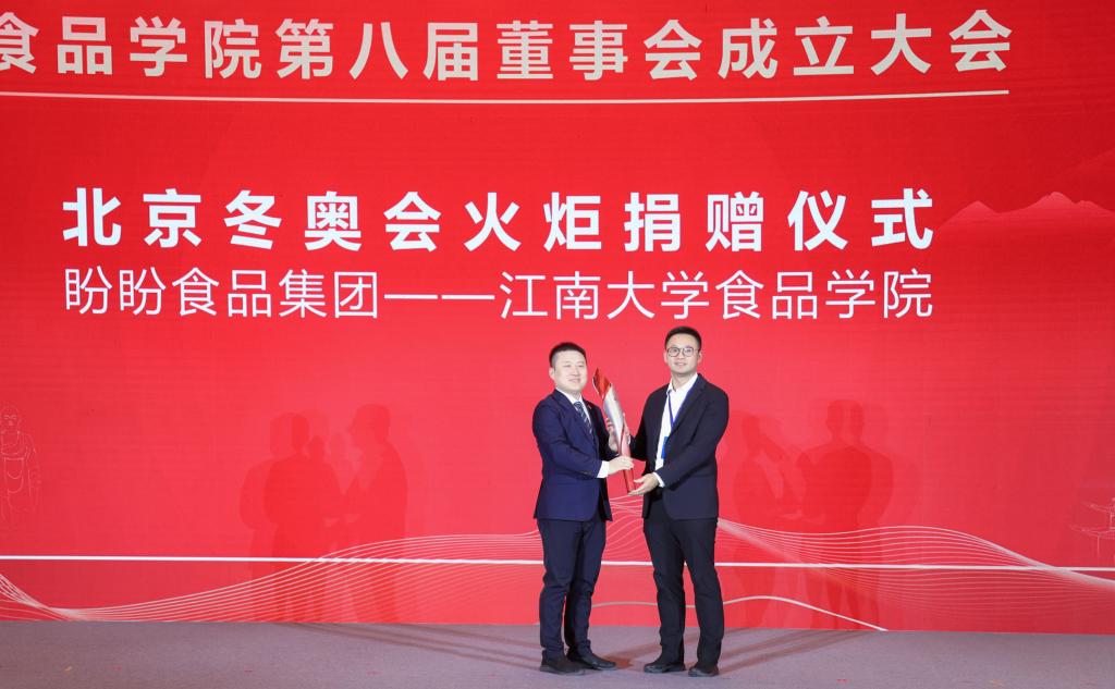 现场还举行“盼盼食品集团——威廉希尔”北京冬奥会火炬捐赠仪式。福建盼盼饮料有限公司总经理、伽那食品创始人蔡丕鹏向范大明捐赠火炬。