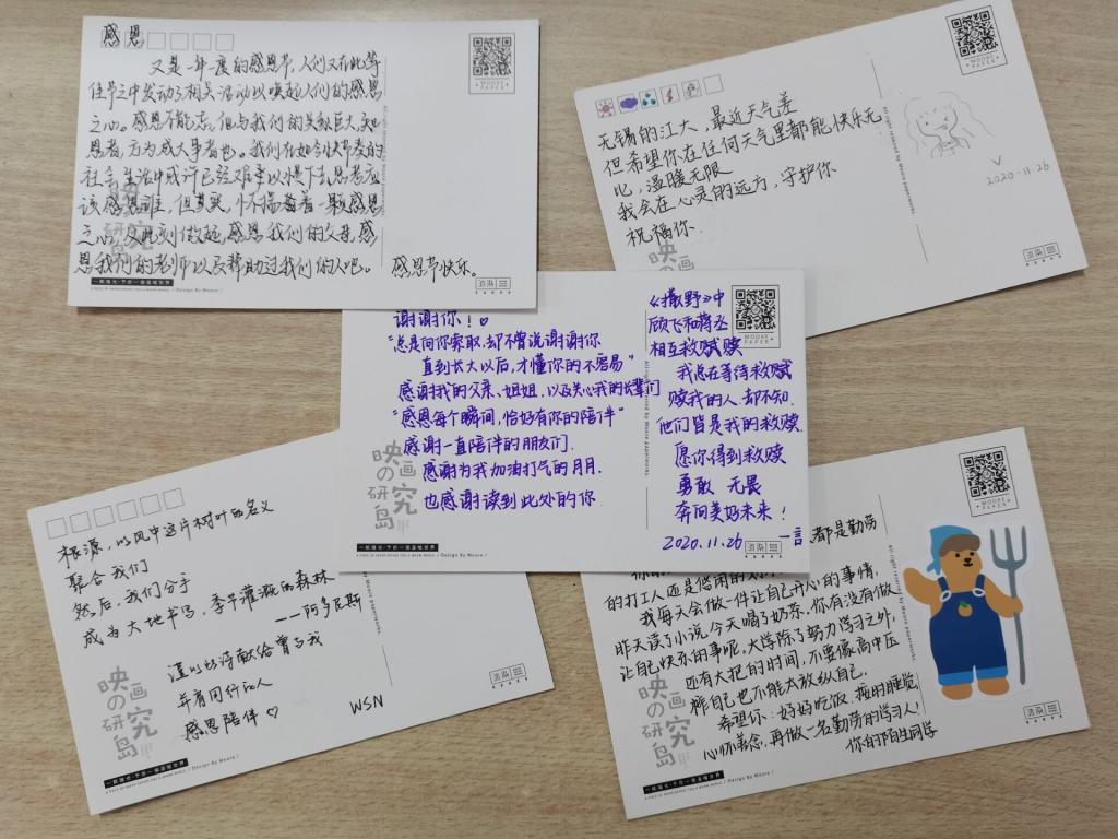 正如海子所言“陌生人,我也为你祝福”,一张小小的明信片,便足以打破同学间心与心的隔阂,在这寒冬天气里传递人情的温暖。通过交换心意,收到满满祝福和感恩的明信片的同学们,心中也是暖暖的。