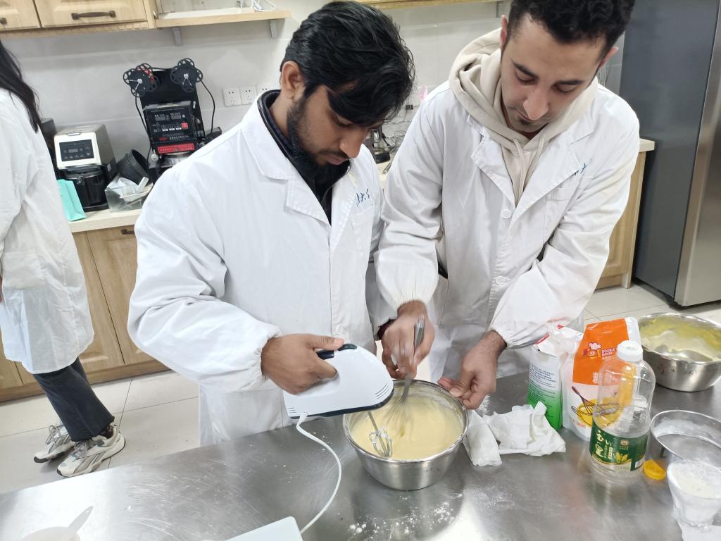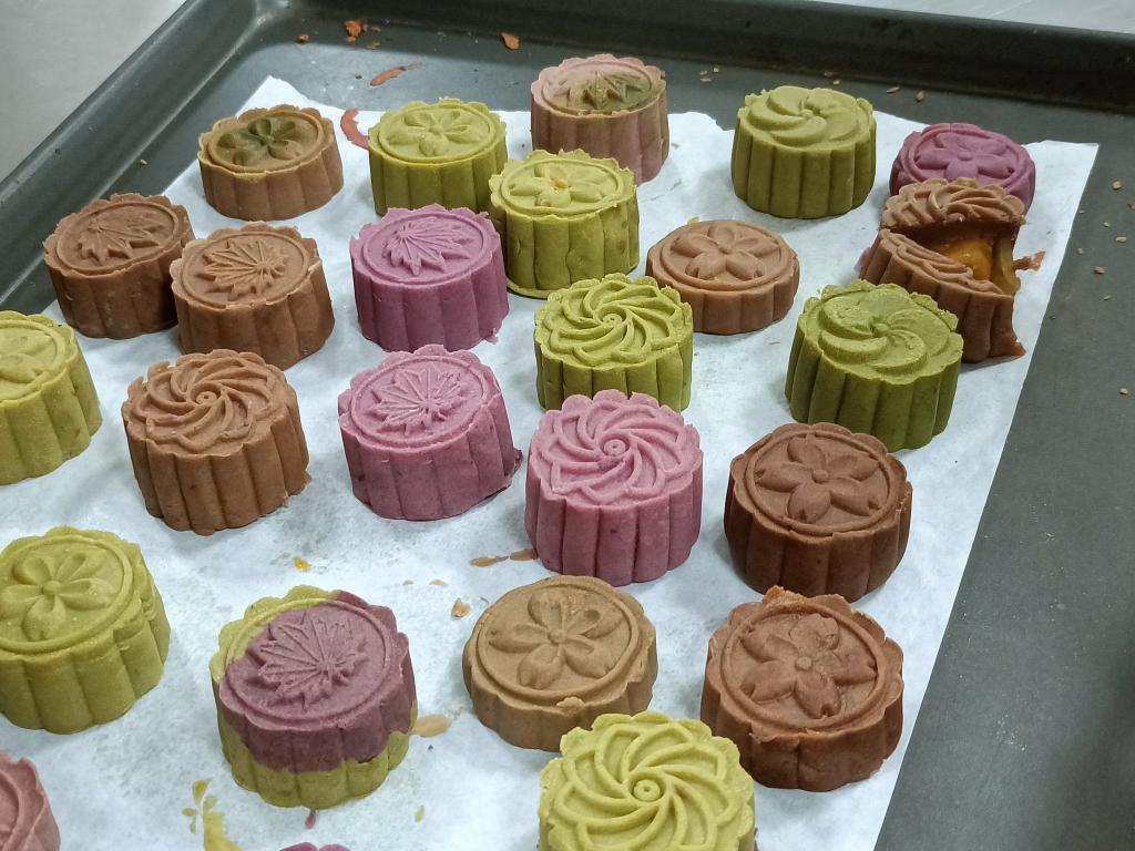 随后,进入烘焙环节,现场同学分为两组,在烘焙俱乐部成员指导下进行面点制作和烘焙,一组制作戚风蛋糕,一组制作桃山皮月饼,中西点心碰撞,趣味性十足。在制作过程中,中国员工热情、耐心地讲解制作细节,职工们认真学习,展示出了独特的烘焙天赋。在欢声笑语中,桃山皮月饼和戚风蛋糕前期准备完成,进入了烘烤阶段。
