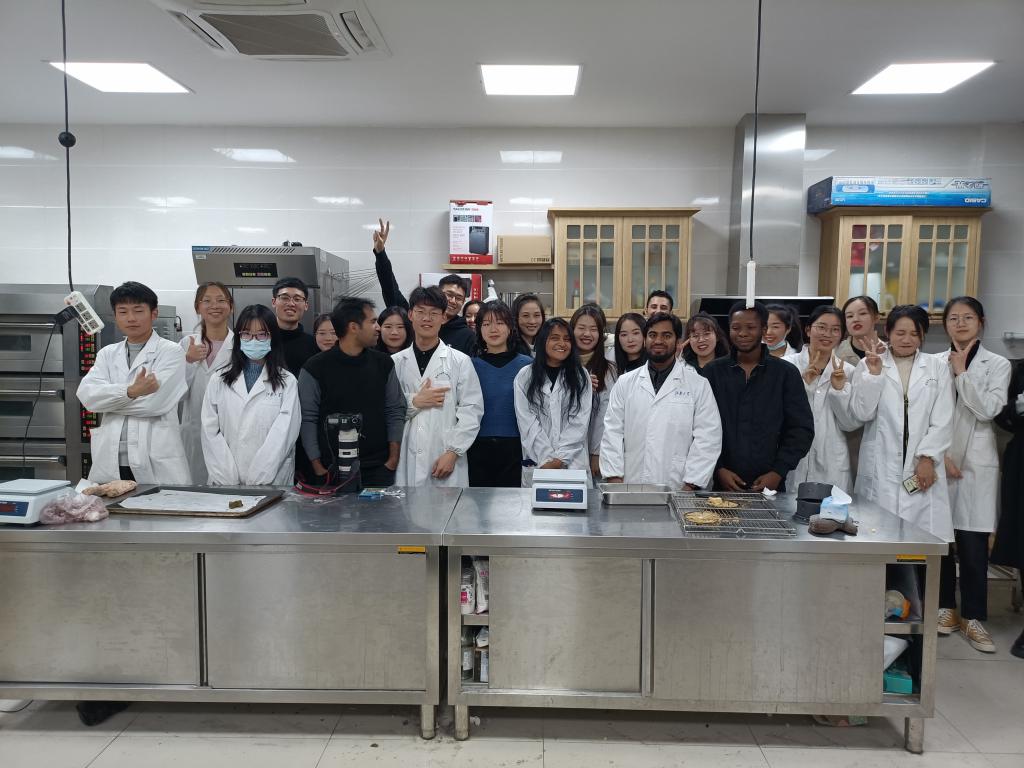 游戏过后,同学们品尝了亲手制作的戚风蛋糕和桃山皮月饼,纷纷表示活动体验感非常好,感受烘焙过程的同时也锻炼了语言交流能力。活动最后,中外员工进行合影留念。