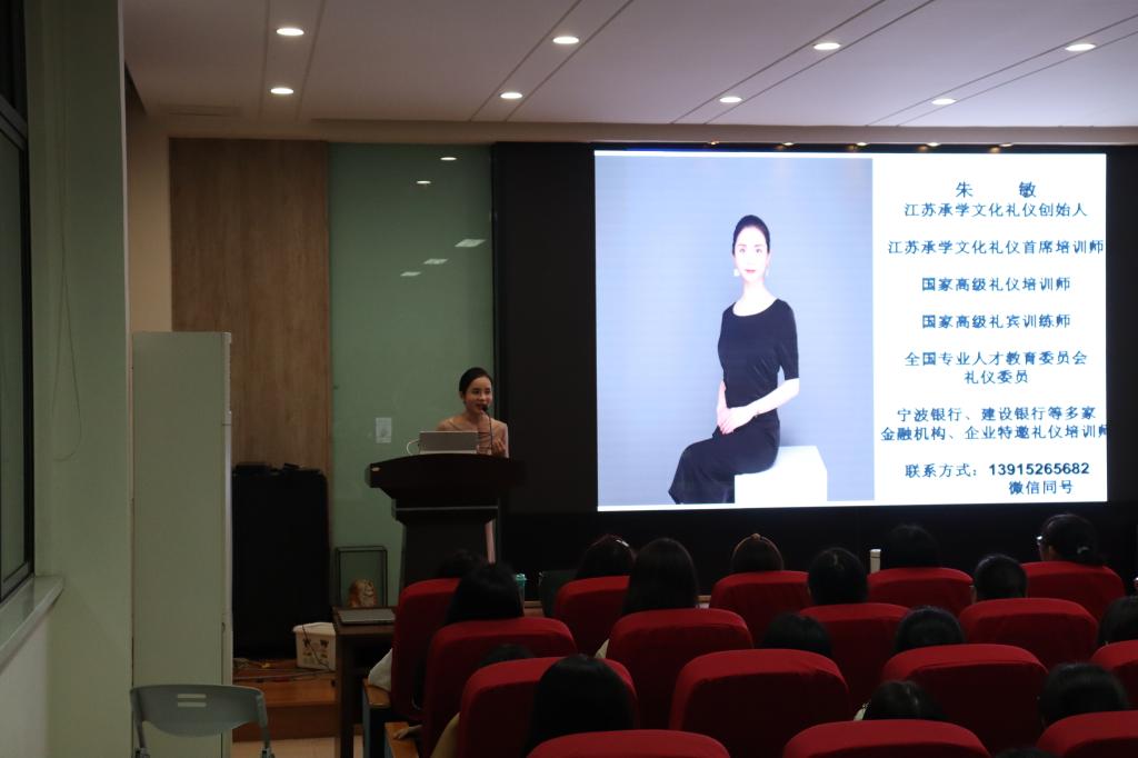 9月8日,williamhill在学院楼D912报告厅举办“形象与礼仪”专题讲座,活动邀请到中国礼仪研究专家朱敏老师为食品学子作分享,学院分团委书记王胤及100余名员工参加了讲座。