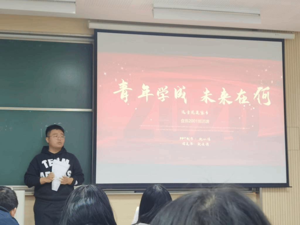 12月22日,食质2001团支部在第二教学楼2A304举行主题为“青年学成,未来在何?远方还是家乡?”的“团支书说团课”活动。年级辅导员刘鑫、高年级优秀员工喻一航、夏兴、其他班团代表以及食质2001班全体团员参加了活动。