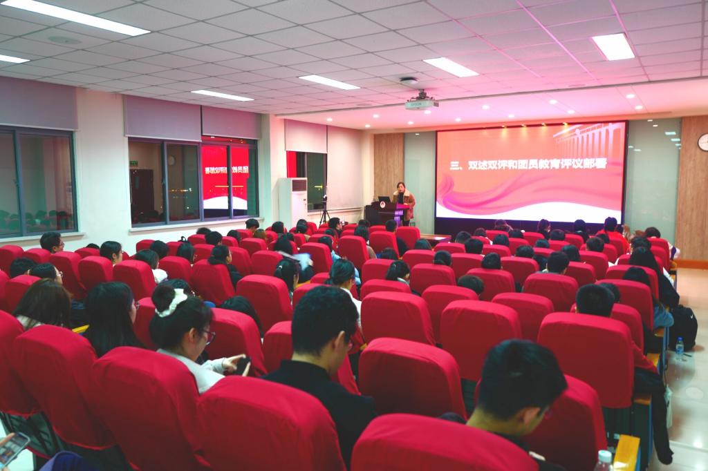 随后,分团委组织部、宣传部、督察部分别为新生班团讲解了团支部的具体工作。督察部部长曹语轩讲解了“推优”工作的流程和要点,组织部部长宋洁讲解了青年大学习和团日活动内容及相关要求,宣传部部长白德华讲解了团学新闻稿件的写作要求和要领。
