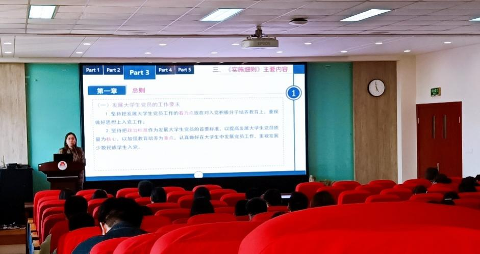 会议上,李琳老师讲解了发展党员程序及注意事项,她首先介绍了全公司党员的总体情况,根据党员发展工作指导文件,对发展党员《实施细则》进行了详细解读,包括从入党申请书的提交开始到预备党员的转正的全部流程,她还讲解了入党流程中几点重要的注意事项。