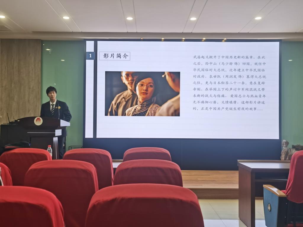随后,现场同学们一起观影。影片演绎了百年前共产党成立的感人历程,同学们聚精会神地观看和交流,期间还有同学对历史背景知识和出现的人物进行了补充介绍,丰富了同学们对于党史的认知。