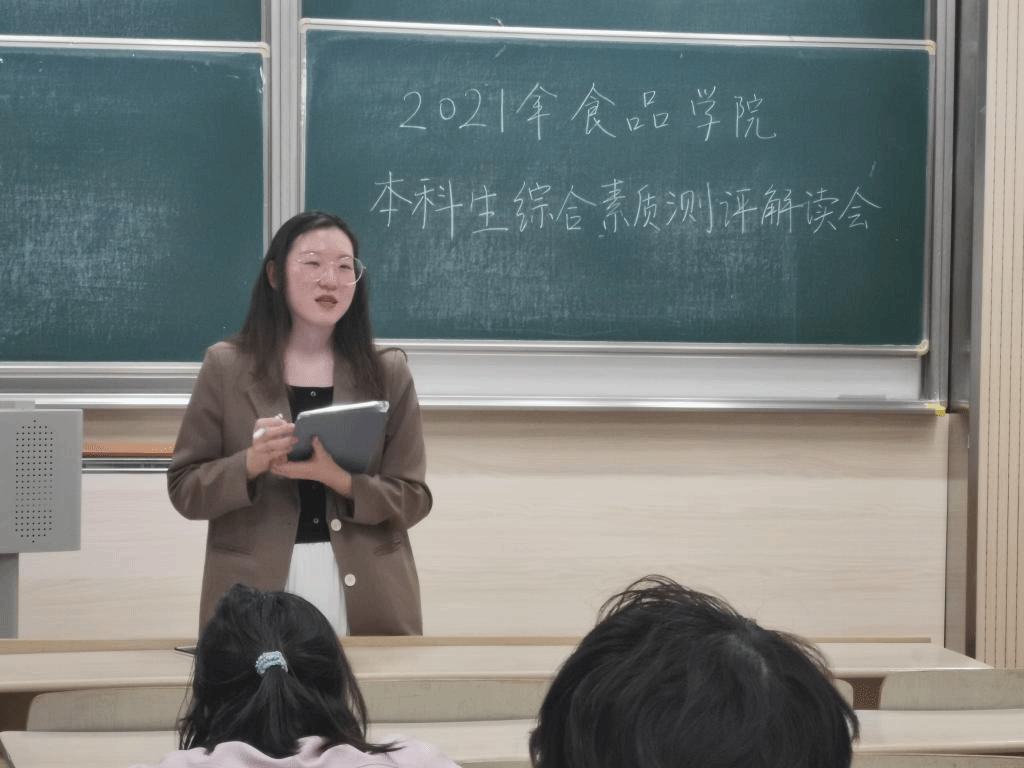 食品资助中心主任周蕴芸同学为各年级班长解读综测