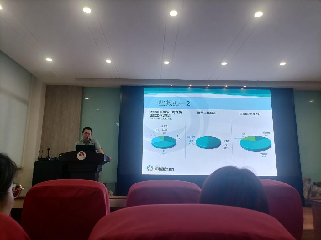 林毅毕业10年后重回母校,给学弟学妹们分享了入职多年来的心路历程和职场经验。他详细地向大家分析了目前的就业形势,以自身为例,向大家分享了自己择业时的考量,并对大家未来的职业规划和择业就业提供了宝贵建议。他认为,在校老员工首先应该潜心学习好专业知识,打磨好专业背景,择业时目光长远不局限,通过发掘自身的专业优势使自己脱颖而出。另外,他还分享了自己至今仍在保持的主动阅读专业书籍的习惯,希望同学们也能够以此充实自己,始终保持探求欲,不断提高个人核心竞争力。