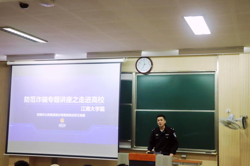 滨湖分局雪浪派出所警官王俊皓做防诈骗安全教育专题讲座