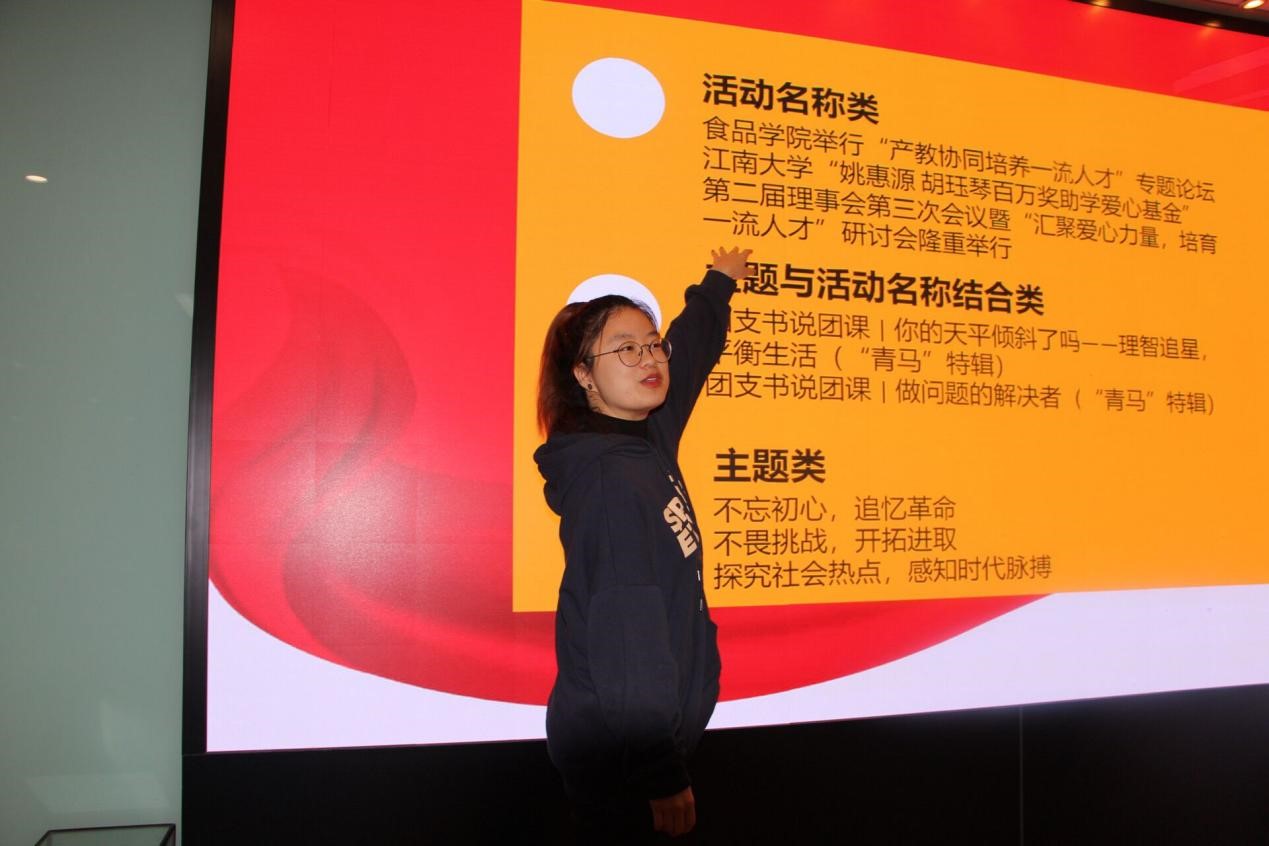 随后,宣传部部长刘振宇阐释了团日活动的定义及意义,用清晰的时间轴让各个团支书明确工作的几个重要时间节点,以期团日活动工作的效率提升。