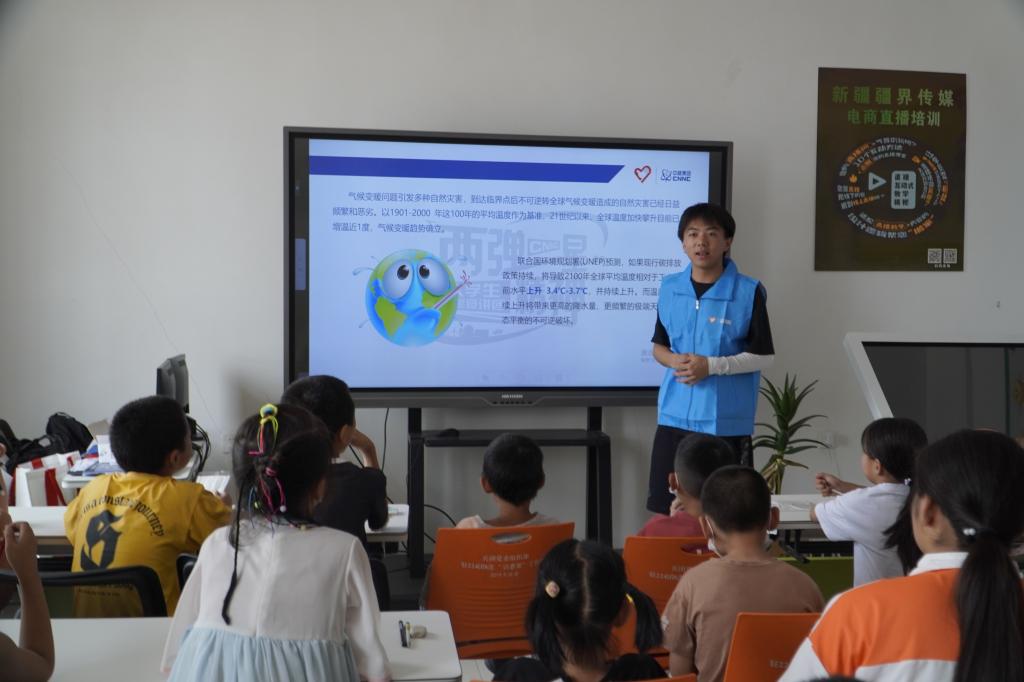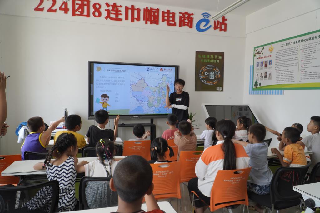 在新疆生产建设兵团昆玉市,实践团开展了普通话推广课程教学及推普进展问卷调研活动。通过收集、整理当地儿童及青少年语言学习的实际情况,对其进行精准帮扶,聚焦拼音书写不规范及发音错误等共性问题,“一对一”帮助孩子们掌握普通话的基本发音规律和书写规律。同时鼓励青少年借助校园、乡镇现有平台及各类信息化学习资源自主学习,为推广普通话打下坚实的基础。