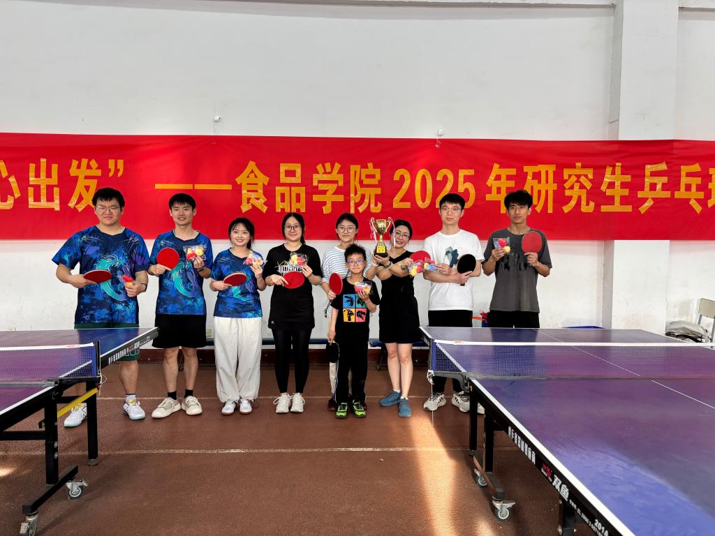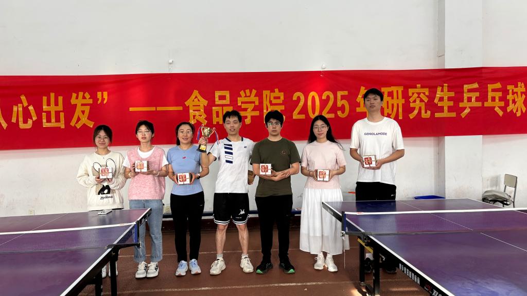 比赛进入白热化阶段,每位选手都拼尽全力,单打选手如猎鹰般精准把控落点,锐不可当;双打搭档似精密齿轮般无缝衔接,尽显风采。赛场上,叫好声、鼓励声此起彼伏,不绝于耳。那些拥有丰富赛场经验的教师与青春洋溢的员工搭档,早已将赛场上每一个人的热情点燃,共同书写着这场乒乓球赛的辉煌篇章。经过五轮鏖战,最终,由唐晓姝老师带领的食品3队夺得桂冠。