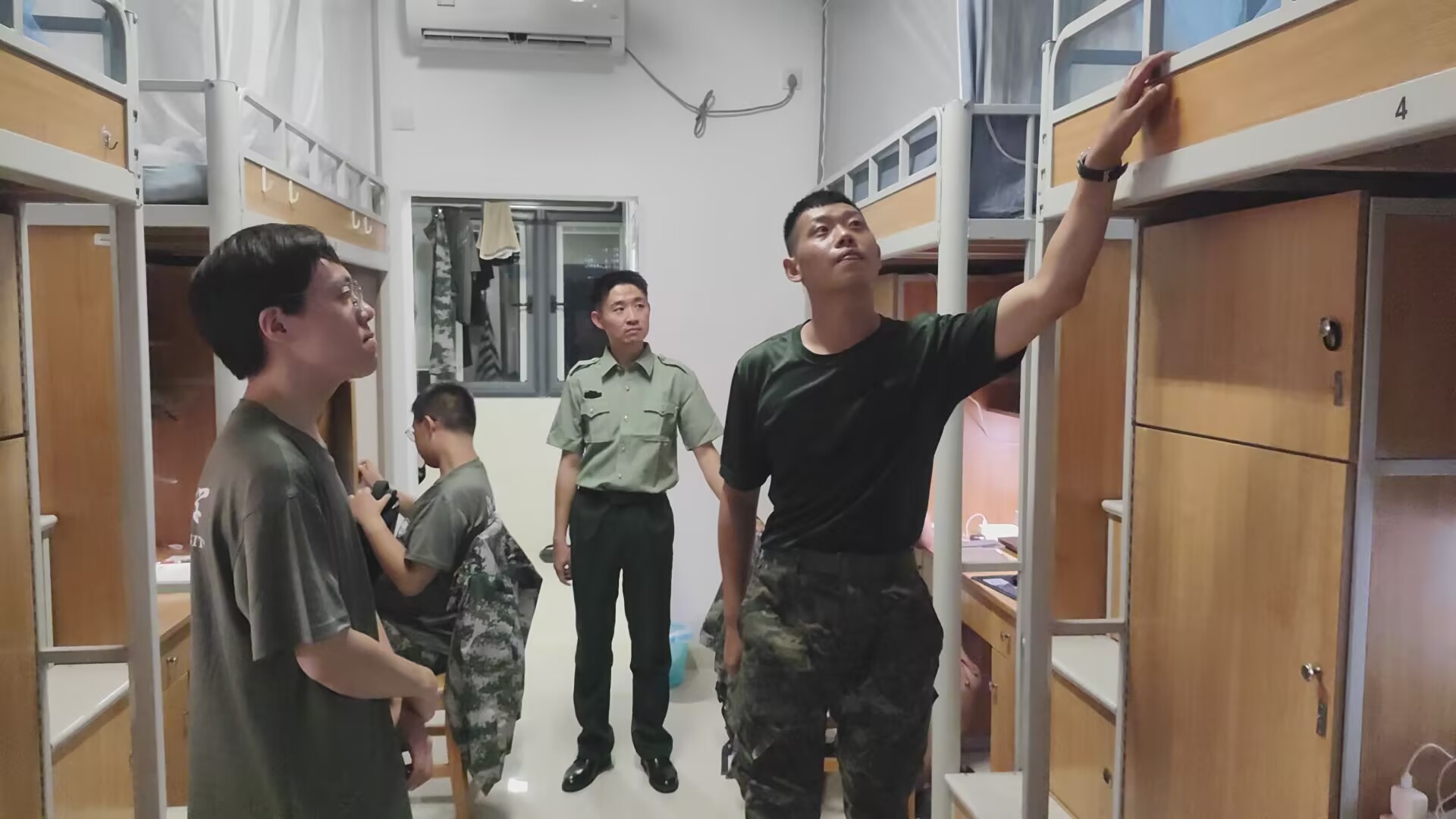 走进新生寝室,教官及辅导员严格对照军训内务规范,以“高标准,严要求”逐一检查宿舍。重点关注宿舍卫生状况,既包括地面清洁、垃圾及时清理等基础要求,又着眼于细微之处,检查阳台及卫生死角,要求晾晒的衣物排列有序、朝向统一,杜绝杂乱堆放,于细微处见严谨。