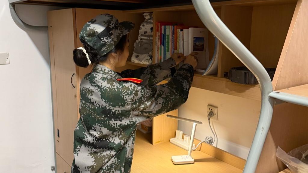 针对检查中发现的共性问题,如桌面物品摆放随意、个人物品收纳不规范等,教官与辅导员当场指出并提出整改建议:书架上的书籍按类别竖排摆放,洗漱用品统一归置在指定区域,充电器等小物件有序收纳进抽屉,确保桌面干净整洁、无杂物。“原来桌面还能这么整齐!”一位同学看着焕然一新的书桌感叹道。