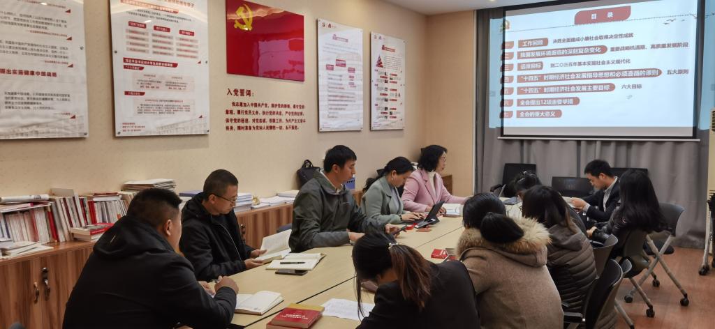 傅莉莉书记首先带领大家学习了党的十九届五中全会召开的时代背景、会议概况和重大意义,重点解读了“高质量发展”“新发展格局”“科技自立自强”“文化强国”等关键词。傅书记说,学习好、宣传好、贯彻好党的十九届五中全会精神是当前公司党委的首要政治任务,各个党支部要在深入学习、全面领会上下功夫,要在指导实践、推动工作上下功夫,结合学院立德树人中心工作,做好“十四五”规划,把学习成果转化为全力实现一流学科高质量发展的新举措、新动力。