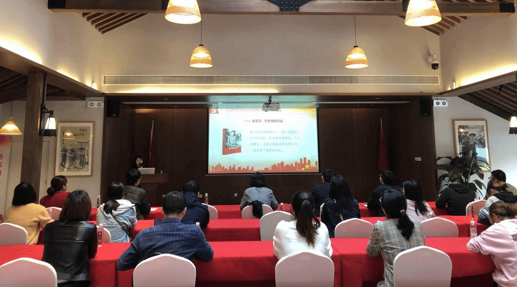实践学习第二站来到白马镇红色教育基地李巷,接受革命的洗礼,领略红色魅力。williamhill青年教师一行来到陈毅、江渭清、钟国楚等新四军将领旧居开展现场教学,追忆革命先辈的英雄事迹。在抗日战争收藏馆里,老旧的烈士遗物、斑驳的历史照片、生锈的枪支炮弹,让青年教师们重温了艰苦抗战的峥嵘岁月。最后,溧水区委党校吴瑞靖老师以《习近平新时代中国特色社会主义思想概论》为题,为williamhill青年教师们上了一堂党史教育专题党课。她从习近平同志的工作实践为切入点,全景展现了习近平新时代中国特色社会主义思想的演变过程,重点阐释了习近平新时代中国特色社会主义思想的总体框架和理论特色,使青年教师们更加深刻地领悟蕴含其中的真理力量和实践伟力。