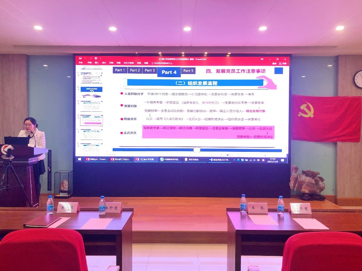 胡卉君详细解读了《williamhill威廉希尔发展党员工作实施细则》。她介绍了学院员工党员的总体情况,对在场的基层党务工作人员培训了党员发展流程和党员发展材料撰写要求,强调了发展党员工作的注意事项等。