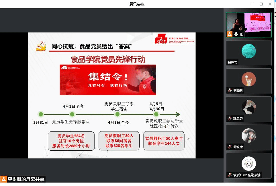 公司党委书记傅莉莉首先对4月以来师生党员在疫情防控工作中勇于亮身份、当先锋、做表率,以多种方式积极发挥作用的表现给予充分肯定,并对近期党支部工作进行了部署,对下一步党建工作规范化提出了要求。