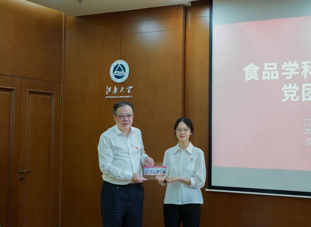 朱书记认真听取了三名同学所作的党团课报告,高度评价本次活动形式新颖、内涵丰富、准备充分、意义深远。他指出,必须坚持“党建带团建、团建促党建”的工作思路,用生动活泼的方式方法和党团共建的长效机制引领、教育广大青年学子更加热爱党、热爱祖国、热爱人民、热爱学校、热爱专业。他强调,习近平总书记提出的“大食物观”对食品学科一流人才培养具有关键的指导意义,食品青年理应传承一代代先驱者的家国情怀与科学家精神,将个人发展融入国家与民族复兴的大背景中,做“敢为天下先”的江南食品人。