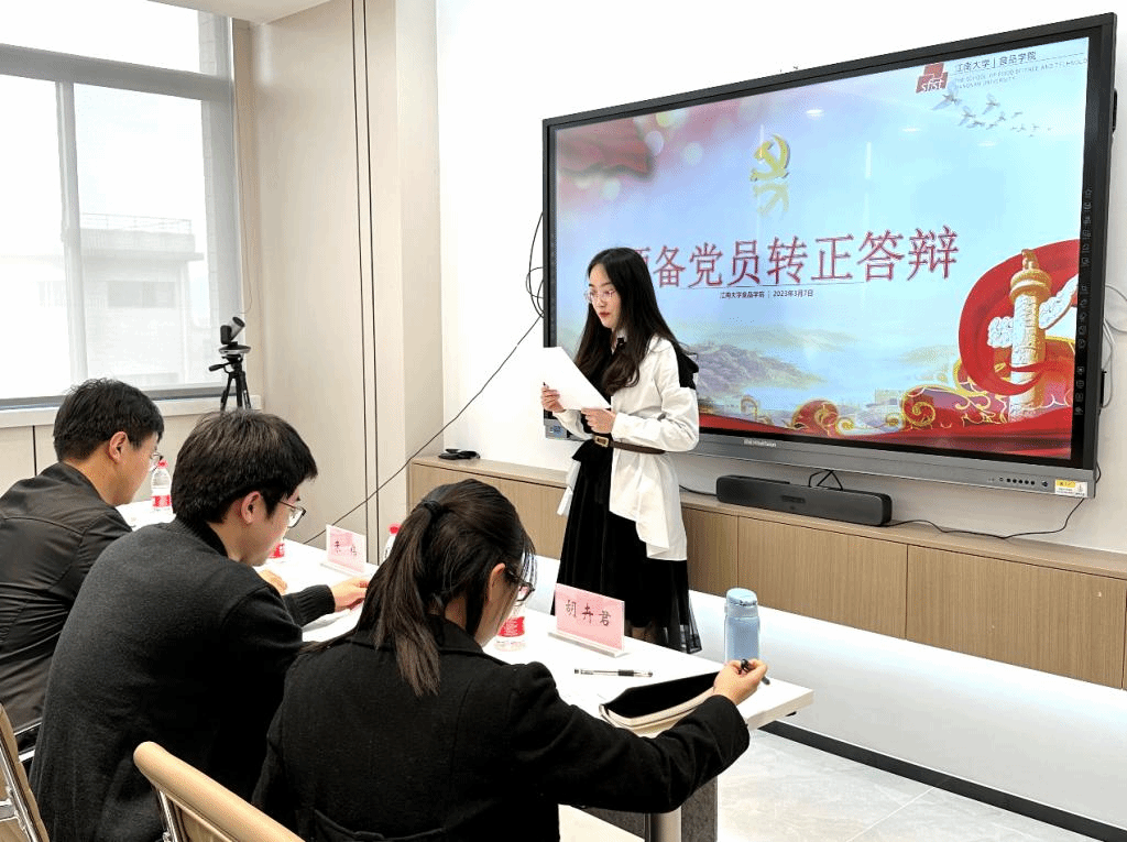 为进一步提高员工党员发展质量,根据《williamhill威廉希尔老员工发展党员工作“三投票三公示一答辩”实施办法》有关精神,williamhill于2023年3月7日在食品楼D917举行预备党员转正答辩会。