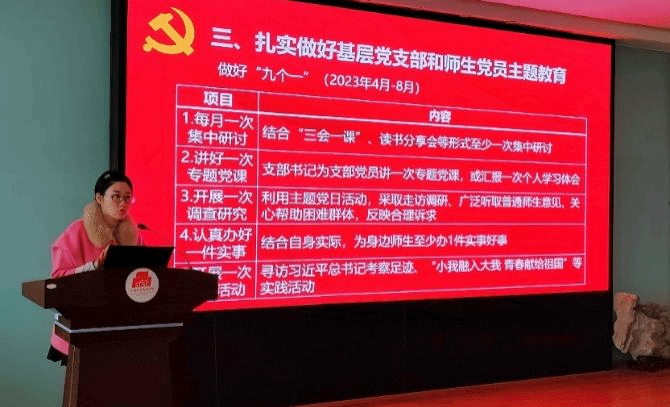 4月28日公司党委组织了主题教育动员部署会暨读书班开班仪式。傅莉莉书记指出,全体中层领导干部要深刻认识主题教育的重大意义,牢牢把握主题教育的目标要求,不断增进对党的创新理论的政治认同、思想认同、理论认同、情感认同,把主题教育和落实立德树人根本任务紧密结合起来。在读书班开班仪式上,公司党委书记傅莉莉带头领学了习近平总书记《在学习贯彻习近平新时代中国特色社会主义思想主题教育工作会议上的重要讲话精神》,范大明经理、李雷副书记进行了重点发言。随后,公司党委分别召开了教师党支部书记、员工党支部书记参加的主题教育动员部署会,要求各基层支部发挥好支部战斗堡垒、干部示范引领、党员模范带头的重要作用,认真落实九个一的任务要求,畅通主题教育“最后一公里”。