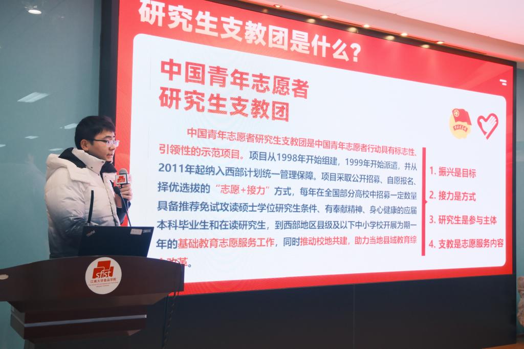 员工党员代表、研究生支教团成员刘振宇从支教团的定位、选择支教团的原因、需要做哪些准备、收获与展望等四个方面分享自己加入支教团的经历,同时讲述自己入党和追寻梦想的心路历程。