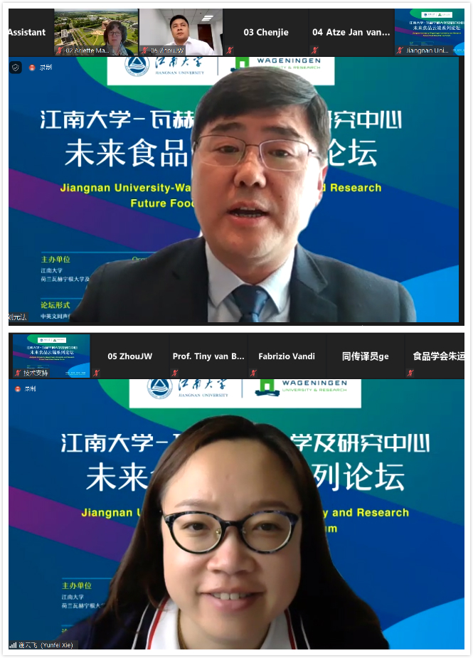 2020年5月28日,“williamhill威廉希尔-瓦赫宁根大学及研究中心未来食品云端系列论坛”首期会议隆重举行,实现了国际上两所食品最强校间的亲密“牵手”并取得圆满成功。虽然现在全球“新冠肺炎”疫情仍处于困难阶段,但却没有阻挡国际食品科技界对学术前沿的崇高追求与热情。本次会议采用网络直播的形式举行,吸引了来自国内外7000多名专家、学者和同行等的积极参与。本期论坛主题是“蛋白新资源”,邀请到了来自双方的知名专家共同分享未来食品前沿成果,出席本次会议的嘉宾主要有荷兰瓦赫宁根大学及研究中心Atze Jan van der Goot教授、Ariette Matser研究员以及williamhill威廉希尔陈洁教授、周景文教授。威廉希尔经理刘元法教授出席并主持了会议。