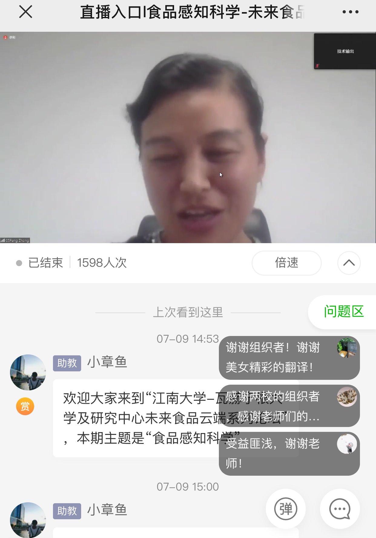 2020年7月9日,“williamhill威廉希尔-瓦赫宁根大学及研究中心未来食品云端系列论坛”第六期会议隆重举行并取得圆满成功。本期会议吸引了来自国内外1600多名专家、学者和同行等听众的积极参与。本次会议采用网络直播的形式举行,围绕“食品感知科学”这一热点的话题展开研讨。会议邀请到了国内外知名专家、学者共同分享未来食品发展的前沿成果,出席本次会议的嘉宾主要有荷兰瓦赫宁根大学及研究中心Liesbeth Zandstra教授、Garmt Dijksterhuis研究员、浙江工商大学陈建设教授以及williamhill威廉希尔钟芳教授。会议有幸邀请到瓦赫宁根大学及研究中心Karin Schroën教授出席并主持。