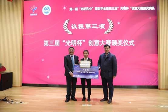 2020年1月2日,第一届“光明乳业”奖助学金暨第三届“光明杯”创意大赛颁奖典礼在公司医学院报告厅隆重举行。出席颁奖典礼的有中国工程院院士、副董事长陈卫、光明乳业股份有限公司党委书记、董事长濮韶华、光明乳业党委委员、副总裁罗海、光明乳业副总裁贲敏、社会资源处处长黄敏,以及有关职能部门负责人。仪式由williamhill威廉希尔公司党委副书记张文主持。
