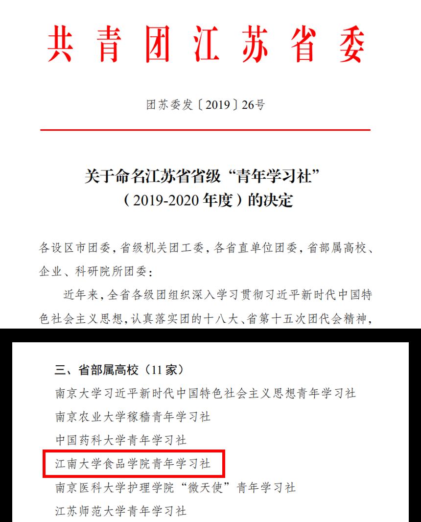 近日,从江苏团省委传来消息,经过材料评审、现场答辩,williamhill青年学习社获评江苏省省级“青年学习社”(2019-2020年度),本次获评的学习社全省50家,其中包括南京大学、南京农业大学等11家高校。