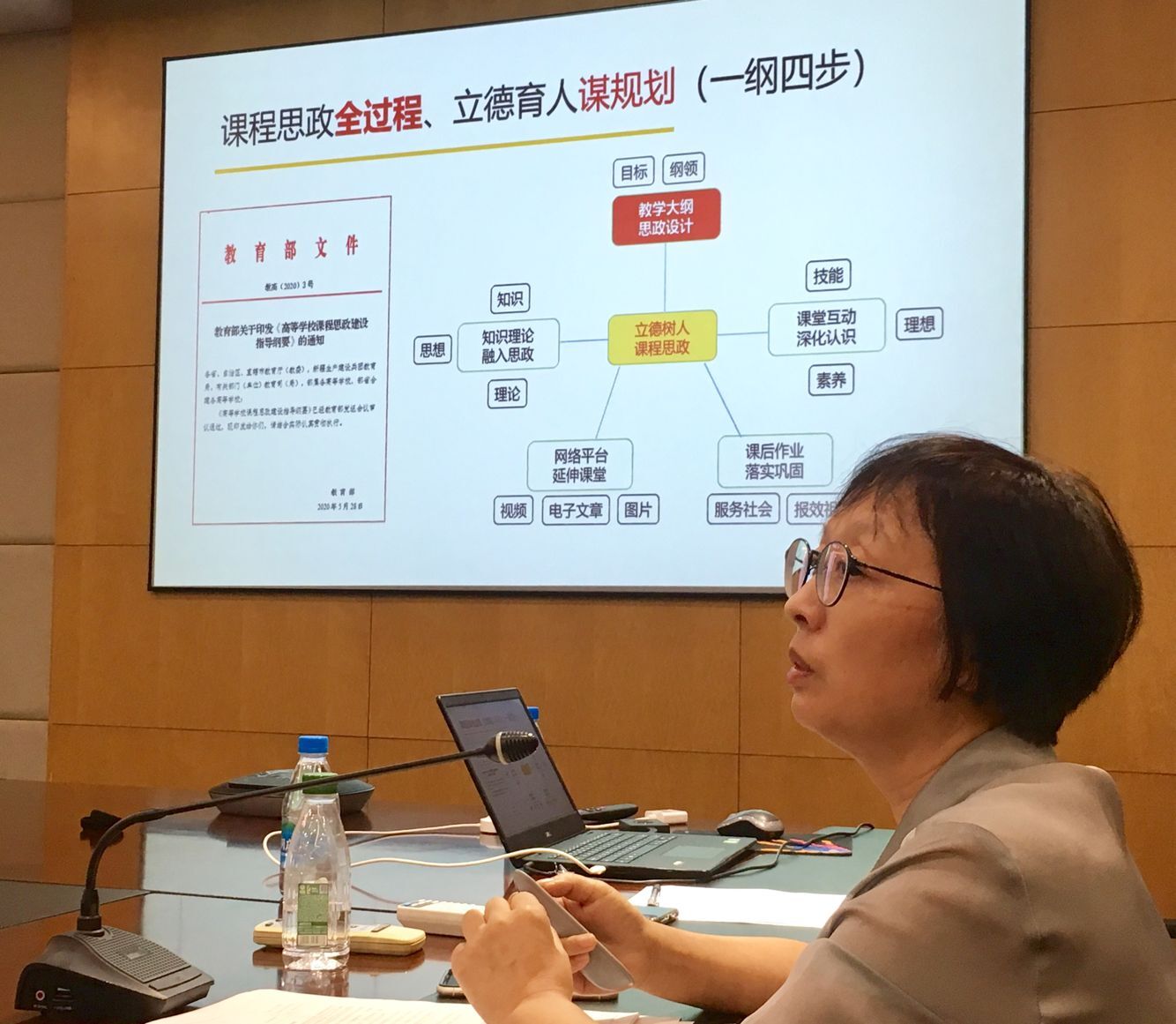 在专题报告环节,张云霞教授做了“课程思政建设思考--学习《高等学校课程思政建设指导纲要》”的主题报告。她从《纲要》的背景、意义和具体要求方面进行了解读,并从课程思政建设的目标及内容谈起,通过分享其他高校效果较好的课程思政案例,和与会老师一起探讨了如何结合公司学科和专业特点分类推进课程思政建设,建议围绕国家、区域和行业发展的需求来构筑思课程思政建设,充分发挥思政教育功能。