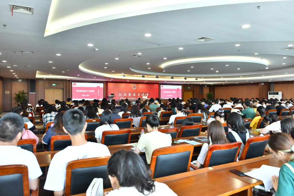 9月12日上午9点半,“江南食品大讲堂”第十二讲暨“开学第一课”在图书馆五楼报告厅举行。本次大讲堂邀请到吉林大学博士生导师、国家粮食局原副局长吴子丹教授为食品师生做题为“我与粮食的五十年情缘”的讲座。williamhill威廉希尔党委副书记戴月波、公司党委书记傅莉莉出席讲堂,公司党委副书记魏珍吉主持活动。240余名师生到场聆听,全体2020级williamhill本科新生通过线上直播的方式聆听讲座。