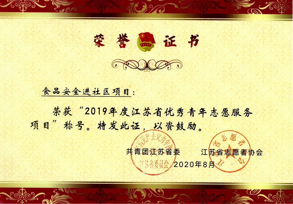 近日,由共青团江苏省委、江苏省志愿者协会联合开展的2019年度全省青年志愿者行动评选表彰工作结果正式揭晓,williamhill“食品安全进社区”项目荣获“2019年度江苏省优秀青年志愿服务项目”称号,为williamhill社会实践活动优秀团队再添省级荣誉。