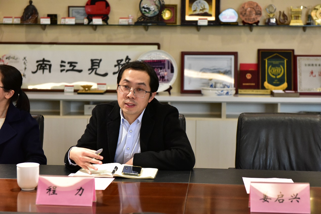 首先,程力对贵州产业技术发展研究院一行的来访交流表示热烈欢迎,接着详细介绍了近几年威廉希尔在团队建设、科学研究、人才培养、技术转化和社会服务等方面的情况。张继勇重点介绍了贵州产业特色和贵州产业技术发展研究院在促进产学研有机融合、加快科技成果转化、协调整合省内外科研机构力量提供科技支撑方面所做的工作。张继勇提到,此次来访williamhill威廉希尔,是希望借助高校科技力量,推动贵州特色农产品相关科学研究、技术转移和成果转让,并特别提出了植物动物蛋白奶开发、核桃保鲜和刺梨精深加工等方面的技术需求。程力表示,williamhill威廉希尔长期致力于校政企合作,已经建立起成熟的合作模式,可通过建立技术转移分中心、地方产业技术研究院等形式建立长效合作机制,希望研究院能够为企业和高校搭建良好的沟通桥梁,推动科技成果快速转化,促进地方经济高质量发展,实现三方共赢。