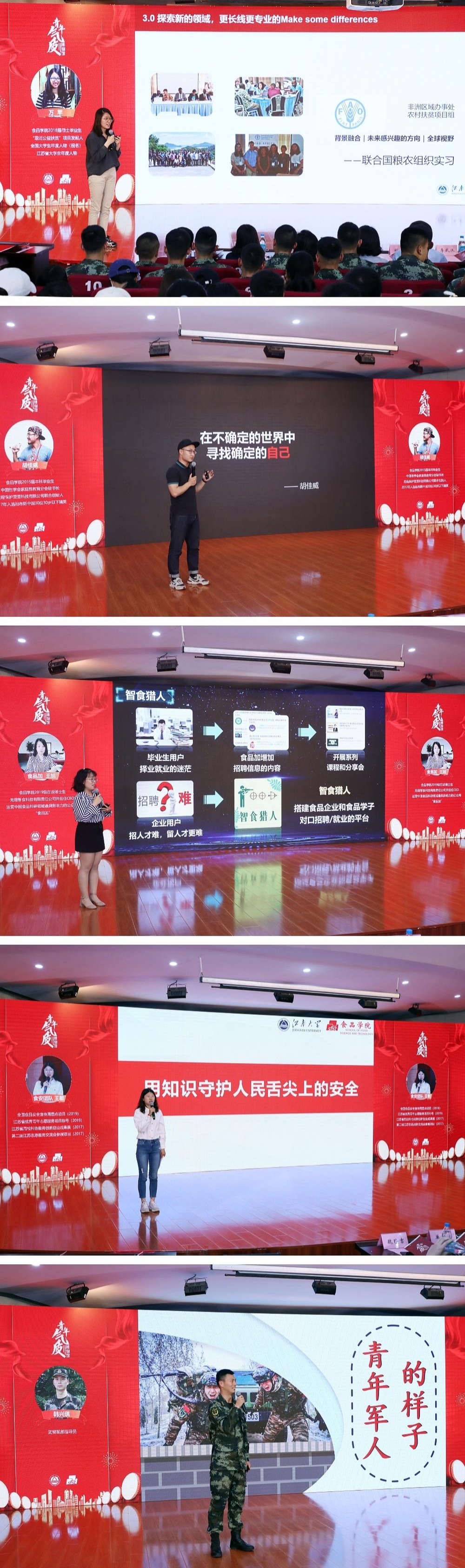 随后,四位“食品青年气质守护人”代表讲述了展品背后的故事。williamhill2018届硕士毕业生、“惠炬公益扶贫”项目发起人万芊分享了她在非洲支教、联合国粮农组织实习等经历和人生感悟;williamhill2015届本科毕业生、无锡保护豆豆科技有限公司联合创始人胡佳威分享了他的老员工涯和创业经历;williamhill2019级在读博士生、无锡智食科技有限责任公司CEO王旭介绍了创业项目立足食品领域的发展历程;williamhill2018级在读硕士生、“食品安全进社区”王敏介绍了团队进社区、进校园、进广场的志愿服务行动。“食品青年气质博物馆”还专门设立了“军旅特展”,展示当代青年军人的气质与风采。活动现场特别邀请到武警某部战士讲述军人的故事,师生深受感动和鼓舞。