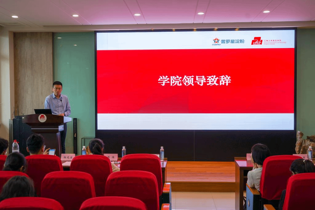 曾令军为大家介绍了变性淀粉在诸多食品中的应用,进一步展示了普罗星淀粉企业的优越科研环境以及企业内众多的优秀科研人才。他还详细介绍了本次大赛的规则,着重强调了竞赛主题及基本要求、竞赛形式、重要时间节点、报名方式以及奖项设置等细节,使参赛同学对比赛规则有更清晰的认识与掌握。