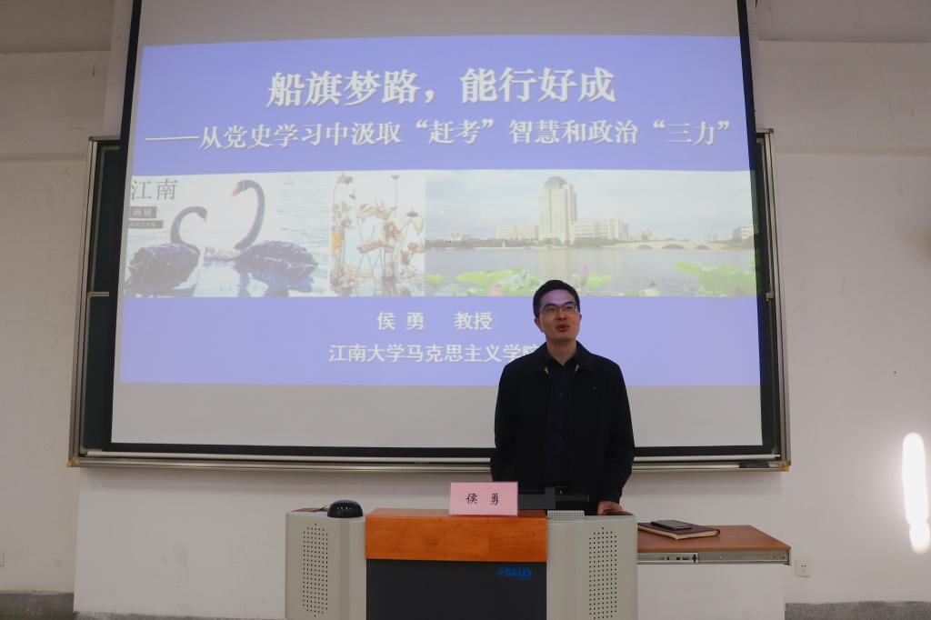 11月10日下午,williamhill2021级本科新生转型教育系列讲座在第二教学楼A127教室顺利举行。本次活动邀请到马克思主义学院教授侯勇为新生作《船旗梦路,能行改成—从党史学习中汲取“赶考”智慧和“政治三力”》主题讲座。讲座由2021级本科生辅导员张任主持。