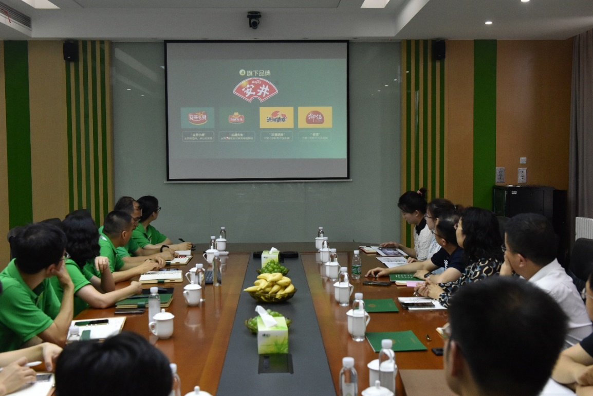 在活动首站无锡华顺民生食品有限公司(无锡安井),师生访问团在总经理庞珂、技术总监连惠章等的陪同下参观企业并予座谈。庞珂详细介绍了安井集团的主业布局、特色优势、发展规划等。程力就团队建设、公司产品、科学研究、国际合作、文化发展等方面予以介绍。校企双方围绕就业政策及需求、产学研合作等话题共同探讨,希望搭建更加完善的就业支持系统,为经济发展和区域创新输送更多的优秀人才。