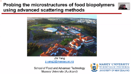 本次专题研讨会为williamhill威廉希尔-新西兰梅西大学食品科学与技术方向首次双边线上学术交流活动。本次研讨会围绕食品科学与技术多个研究方向展开,梅西大学食品与先进技术学院Richard Archer教授首先作题为“Rapid Continuous Freezing of Liquid Foods”的学术报告,随后Lovedeep Kaur高级研究员和Zhi Yang讲师分别作题为“Understanding the relationship between meat structure, processing and digestion”和“Probing the microstructures of food biopolymers using advanced scattering methods”的学术报告。接下来,威廉希尔张文斌教授、郑召君副研究员、杨巍副教授分别以“Aqueous extraction processing of sunflower seed for oil and protein recovery”,“Osteogenic effects of Calcium-binding peptides”和“Enzymatic Acylation of Anthocyanin from Berries”为主题进行学术报告,介绍了各自的研究成果。报告引起了与会师生的浓厚兴趣,双方就相关研究细节和应用展开了积极讨论与互动。