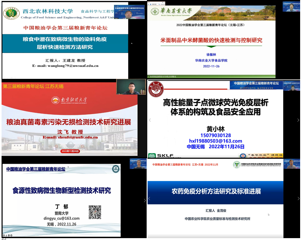 大会报告中,陈坚院士、徐学兵教授、王书军教授、崔晓晖教授围绕论坛主题分别作了《未来食品的挑战与青年学者的任务》、《从学校到企业和从国外到国内:致粮新青年科学家们》、《主食加工过程中组分变化与互作对其营养消化特性的影响机制》以及《基于人工智能大数据的食品计算》高水平学术报告。陈坚院士介绍了未来食品发展的机遇和挑战,从学术视野、研究特长、研究成果、研究要素、学术要求、成果奖励、企业合作等不同维度为当下青年学者指明了科研方向,提出了当前青年学者“如何更优秀”的科研任务和责任担当。徐学兵教授介绍了企业科技创新发展,并结合自身经历,提出科学研究不是领域圈地,作为科研人员应“坚守科学家底线,坚守导师底线”的期望。他们的报告引发了青年科技工作者的热烈讨论,纷纷表示将积极响应党和国家的号召,继承和弘扬新时代科学家精神,担负起“扛稳粮食安全”重任,深耕专业领域,扎实科研,持续积累,厚积薄发,不断为推进新时代粮油科技事业高质量发展贡献智慧和力量。