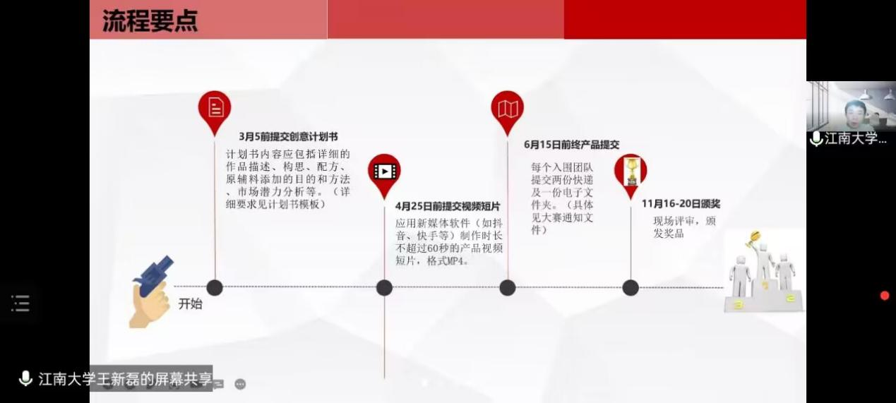 2022年12月13日晚,首届“正官庄杯”红参食品创新大赛宣讲会在线上顺利举行。此次大赛由威廉希尔主办,山西师范大学、石河子大学、新疆农业大学等兄弟高校williamhill协办。正官庄中国研发中心总监王国良,williamhill威廉希尔公司党委副书记、副经理李雷,williamhill威廉希尔、山西师范大学、石河子大学、新疆农业大学等四校williamhill竞赛辅导员,以及四校300余名同学参加线上宣讲会。