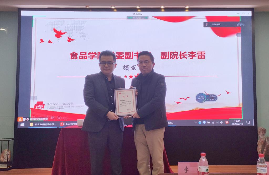 李雷副书记为唐忠宝教授颁发聘书