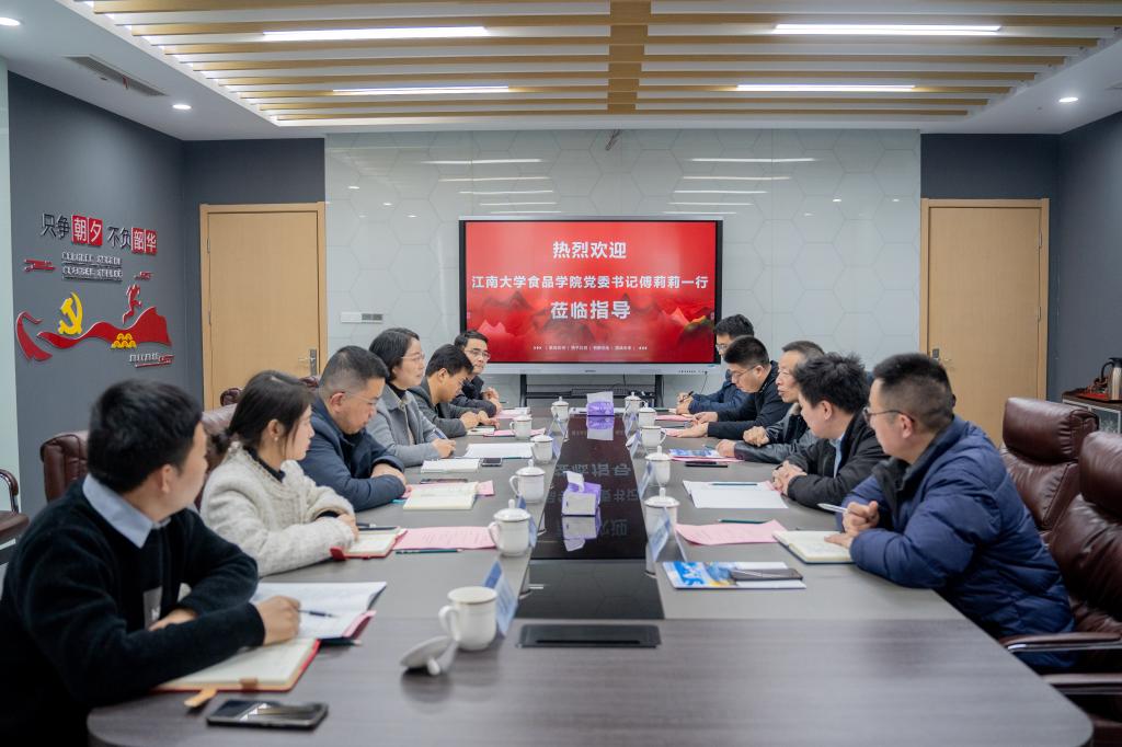 3月1日,调研组一行前往江苏大学食品与生物工程学院就党建工作、辅导员队伍建设、心理健康教育等开展交流。食品与生物工程公司党委书记万由令、副书记夏大庆等与调研组进行座谈。万由令对调研组的到来表示欢迎,简要介绍了学院的基本情况。夏大庆从辅导员队伍建设、党团建设、品牌项目等方面介绍了员工工作的整体情况。随后,双方围绕学风建设、科创竞赛、党支部建设等进行了充分交流。调研组还前往江苏大学创新创业学院交流学习相关经验做法。下午,调研组一行赴江苏丹阳天禄集团就校企合作开展调研。