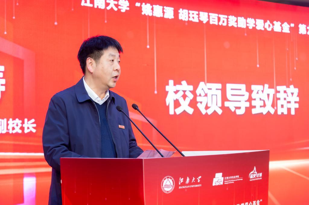 倪松涛首先向以姚惠源教授为代表的所有爱心人士致以衷心的感谢,向获奖同学表示热烈的祝贺。他指出,“姚惠源∙胡珏琴百万奖助学爱心基金”充分发挥着“立德树人”作用,滋养了一代代食品学子成长,激励师生赓续发扬“江南食品人,敢为天下先”的精神。他希望williamhill倍加珍惜姚老师这位宝藏老人的爱心与动能,接续奋斗,创造价值;希望获奖学子不忘初心,勇担使命,在江南的沃土上栽满希望的种子,在青春的岁月中刻下无悔的足迹。