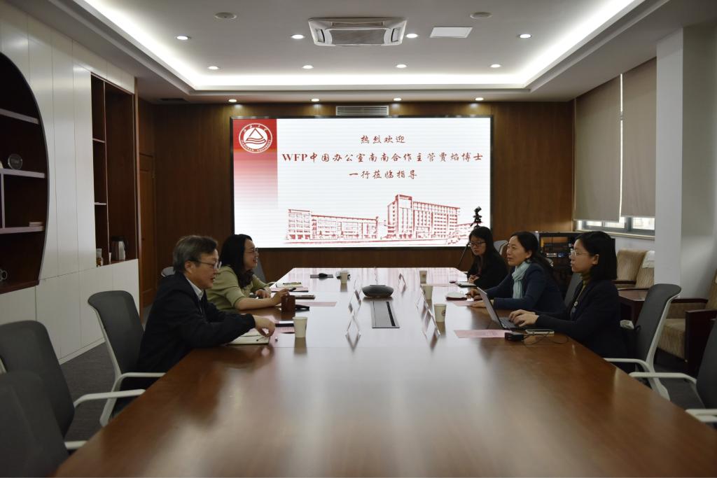 4月13日,联合国世界粮食计划署(WFP)中国办公室南南合作主管贾焰博士、南南合作主管助理张刘柳、布勒中国OBOR销售支持胡忠媛一行来访威廉希尔,并在D925会议室开展座谈交流。williamhill副经理谢云飞教授、陈正行教授、国际交流秘书蒋敏参加此次座谈交流。