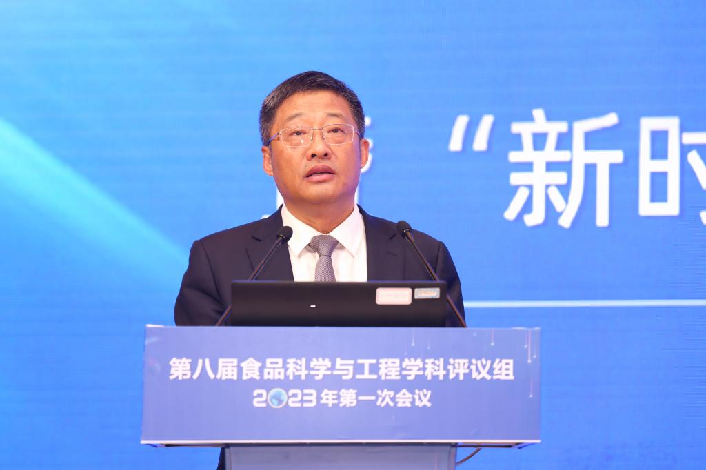 栾宗涛对会议的召开表示热烈祝贺,他指出,习近平总书记反复强调,要夯实粮食安全根基,树立大食物观,构建多元化食物供给体系。国务院学位委员会、教育部高度重视食品领域学科专业建设,食品领域业已形成学术学位与专业学位并重的学科专业体系。他强调,在全面贯彻落实党的二十大精神的开局之年,学科评议组要积极响应国家战略需求,主动对标党中央部署要求,在把方向、定标准、促建设上下功夫,高质量推进食品科学与工程团队建设,确保中国人的饭碗牢牢端在自己手中。