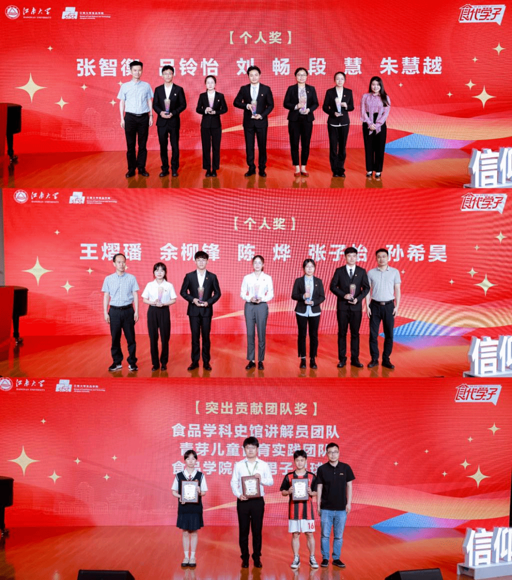 魏珍吉宣读第四届“食代学子”获奖名单。陈烨、余柳锋、张子怡、王熠璠、孙希昊等5名本科生,张智衡、吕铃怡、朱慧越等3名硕士生,段慧、刘畅等2名博士生获评第四届“食代学子”;食品学科史馆讲解员团队、青芽儿童食育实践团队、williamhill员工男子足球队等3支团队荣获第四届“食代学子——突出贡献团队奖”。
