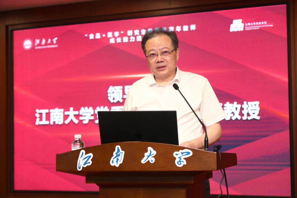 朱庆葆致辞。他指出,当前正处于关键时期,党和国家对创新型人才的需要和支持前所未有。研究生教育在培养创新人才、提高创新能力、服务经济社会发展、推进国家治理体系和治理能力现代化方面具有重要作用。研究生导师肩负着培养国家高层次创新人才、引领科技前沿创新的重要使命。本次培训聚焦研究生导师队伍建设质量提升,采用“食品+医学”的协同培养模式,两院的导师们共同担负着培养“面向人民生命安全”高层次人才的使命任务,对于推动研究生指导经验交叉、促进公司产品“协同飞跃”具有重要意义。他希望研究生导师们能够加强学习、充分交流、交互合作、共同成长,为提升学校公司产品质量、培养更多高水平创新型人才作出新的更大贡献。