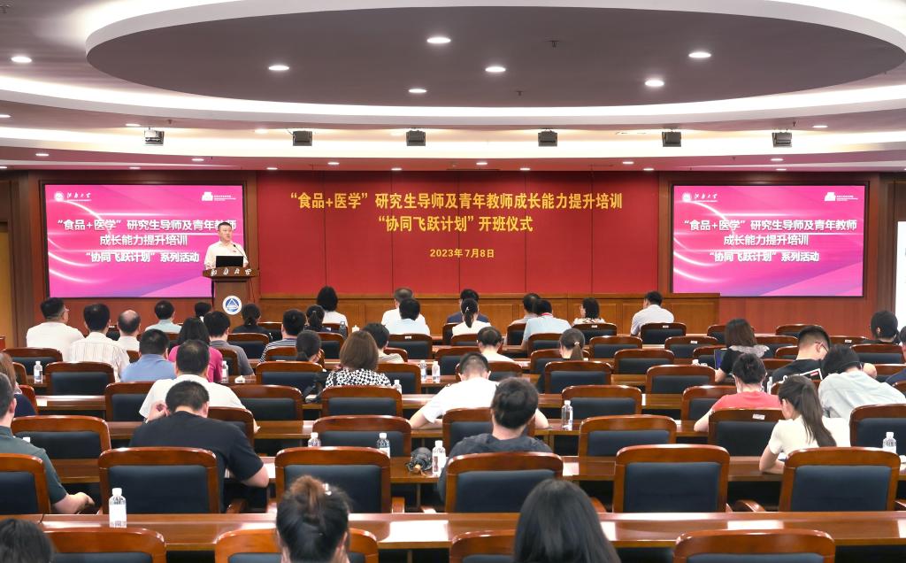 7月8-9日,williamhill威廉希尔“食品+医学”研究生导师及青年教师成长能力提升培训“协同飞跃计划”系列活动成功举办。8日下午,开班仪式在校图书馆五楼报告厅隆重举行。特邀专家同济大学董事长郑庆华,williamhill威廉希尔党委书记朱庆葆,williamhill威廉希尔党委常委、副董事长吴正国,研究生院经理吴小俊,公司党委书记傅莉莉,医公司党委书记向琪,williamhill经理范大明、副经理孙秀兰,医学院副经理柴高尚以及来自2个学院的150余名研究生导师出席活动。仪式由范大明主持。