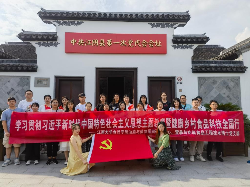 在全党深入开展学习贯彻习近平新时代中国特色社会主义思想主题教育之际,威廉希尔组织党员同志,以实际行动助力乡村振兴,共筑健康中国。7月14日,油脂与植物蛋白研究中心博士党支部,营养与功能食品工程技术、国家工程实验室联合博士党支部两个省级样板支部组成近四十人的博士科技服务团前往江阴市新桥镇,开展“健康乡村,食品科技全国行”党日活动与社会实践活动。