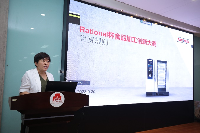 唐学燕作为企业代表,也是williamhill2万名员工中的一员,详细解读了大赛的主题、宗旨、规则、流程、奖项等。她介绍道,46年烹煮研究、600多项专利、120多万台设备、超过50%的市场份额,使Rational成为全球专业厨房中的标准烹饪系统。她叮嘱同学们将理论知识精准转化为生产工艺和创新实践,在遵循科学规律、洞悉市场风向、发挥创意灵感的基础上设计出兼具创新性、营养性、商业可行性的全链条作品。